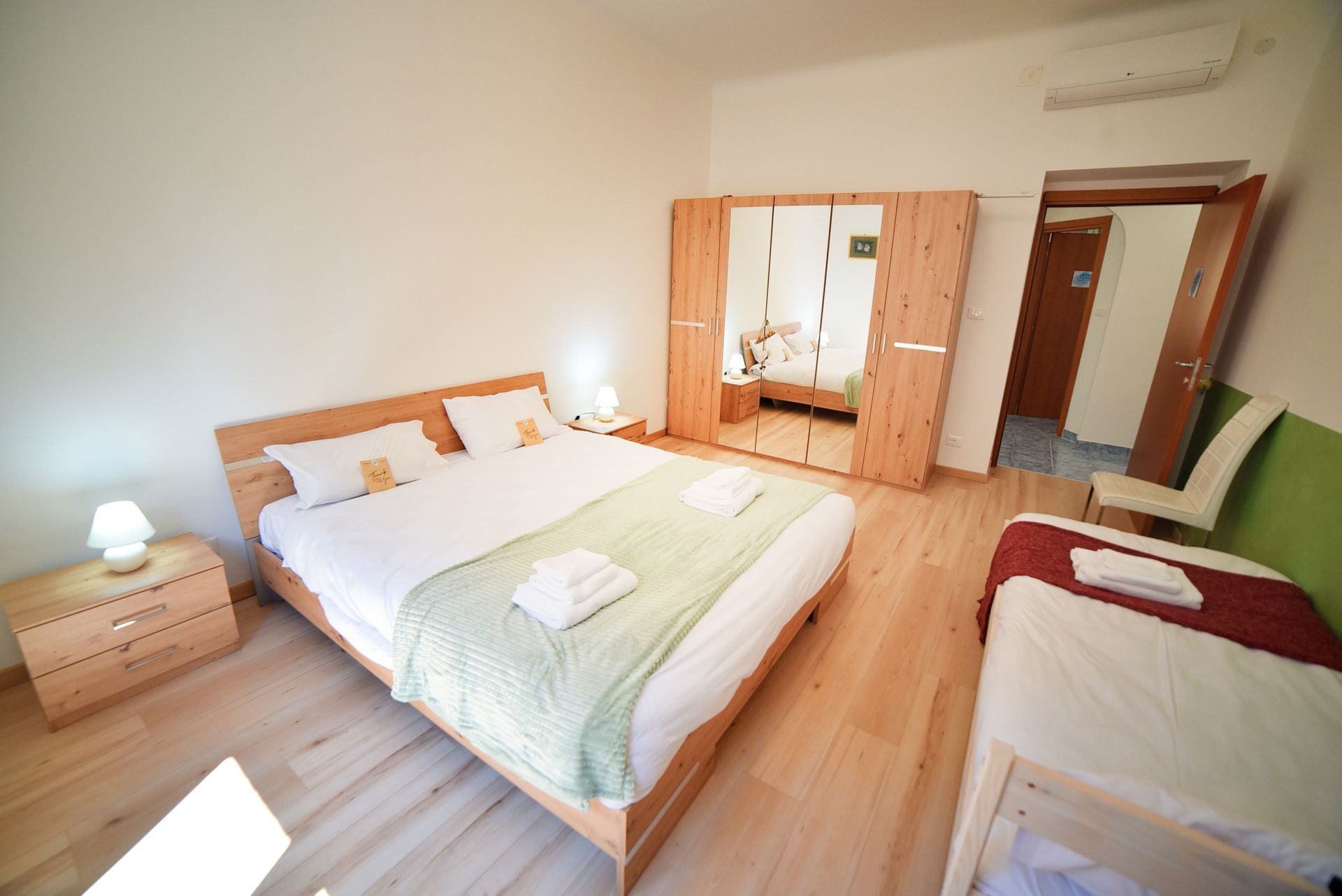 La stanza della Rugiada è una camera tripla, dispone di un comodo letto matrimoniale e di un letto singolo. Avrete a disposizione un ampio armadio per sistemare tutte le vostre cose e sentirvi a casa e anche di una scrivania per i momenti di studio o di smart working.