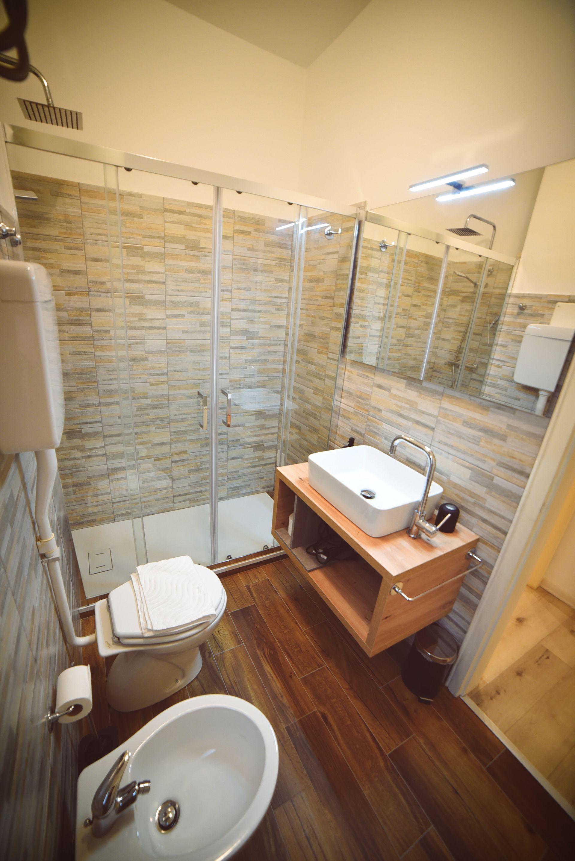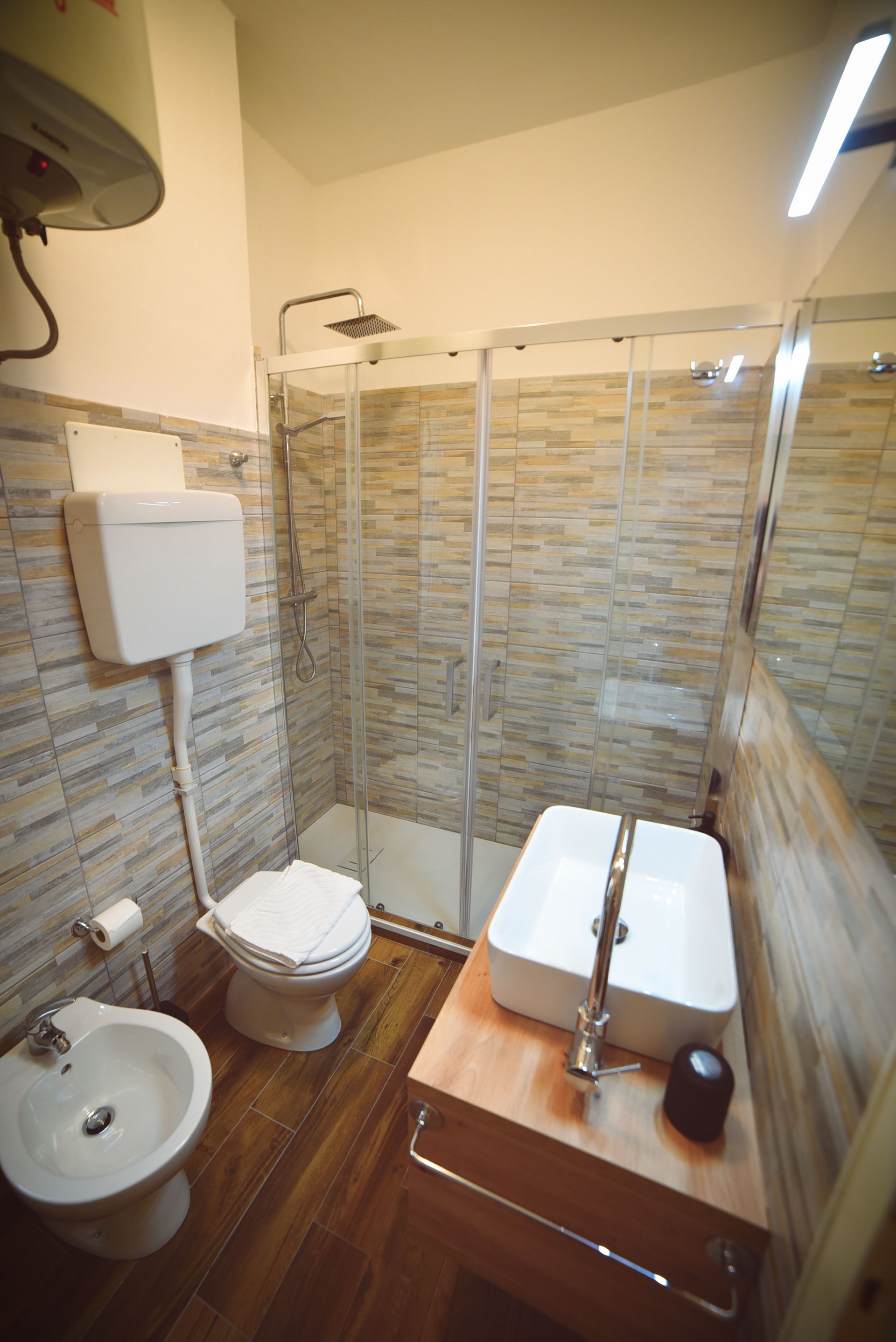 Ein modernes Badezimmer mit komfortabler Duschkabine.