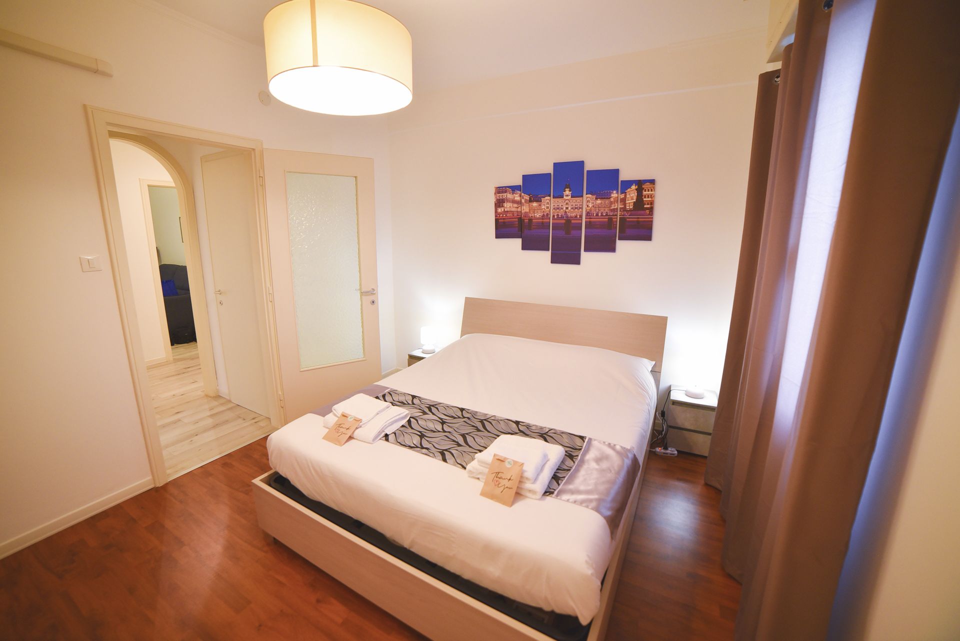 Das Apartment verfügt über ein Schlafzimmer mit einem Queensize-Bett und einem großen Kleiderschrank zur Aufbewahrung Ihrer persönlichen Gegenstände.
