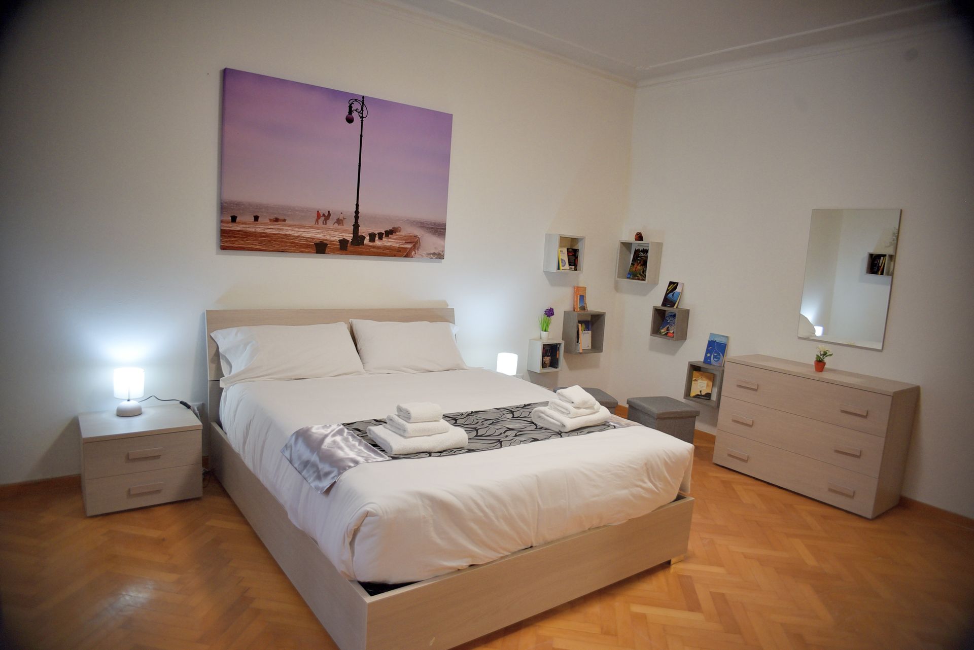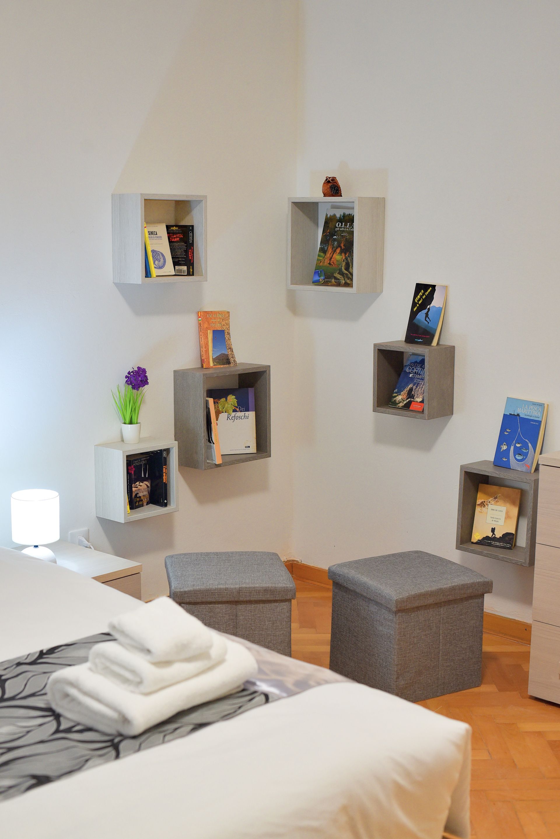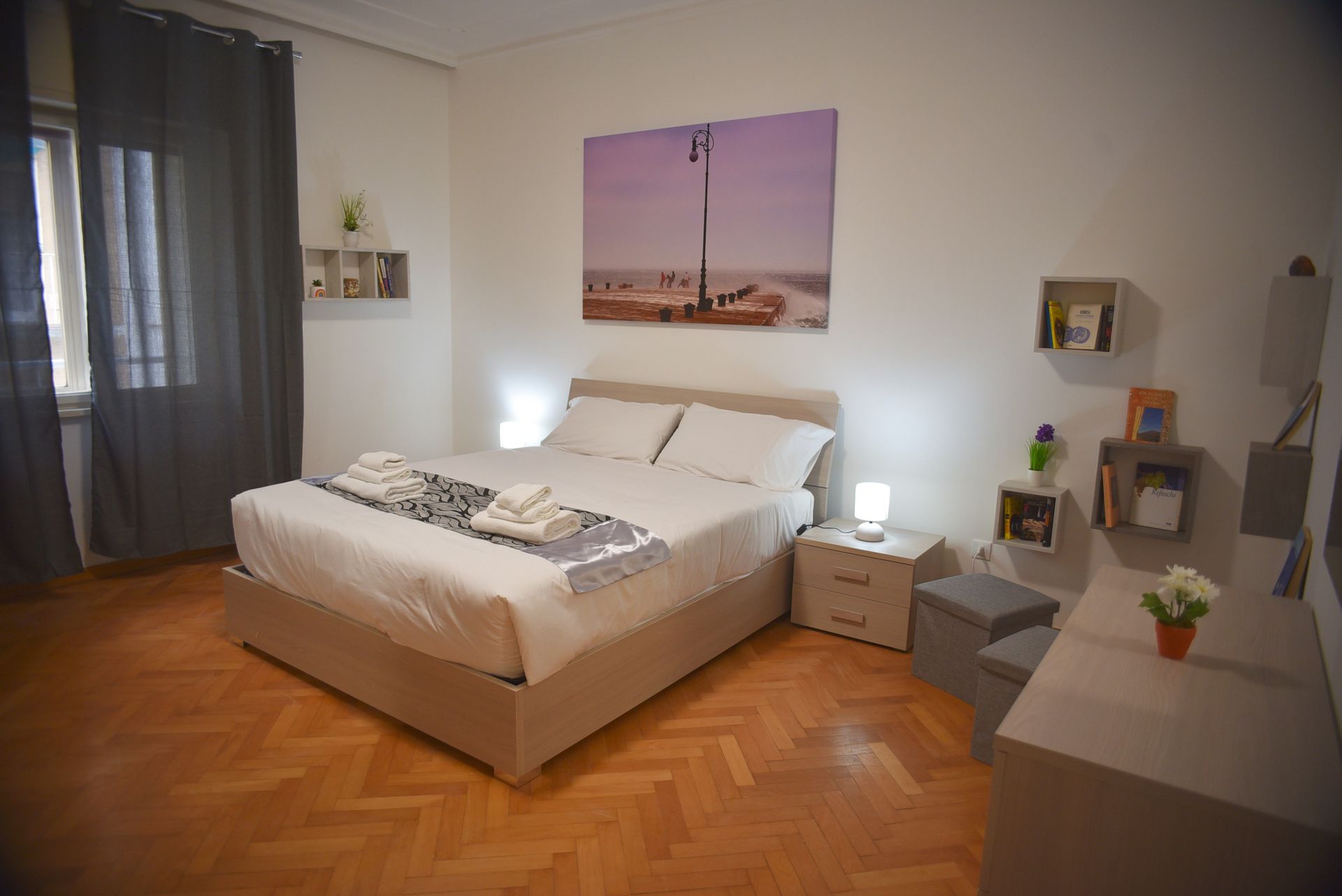 L'appartement dispose d'une chambre jeune avec un lit queen-size, une grande armoire et un coin agréable pour lire et se détendre.