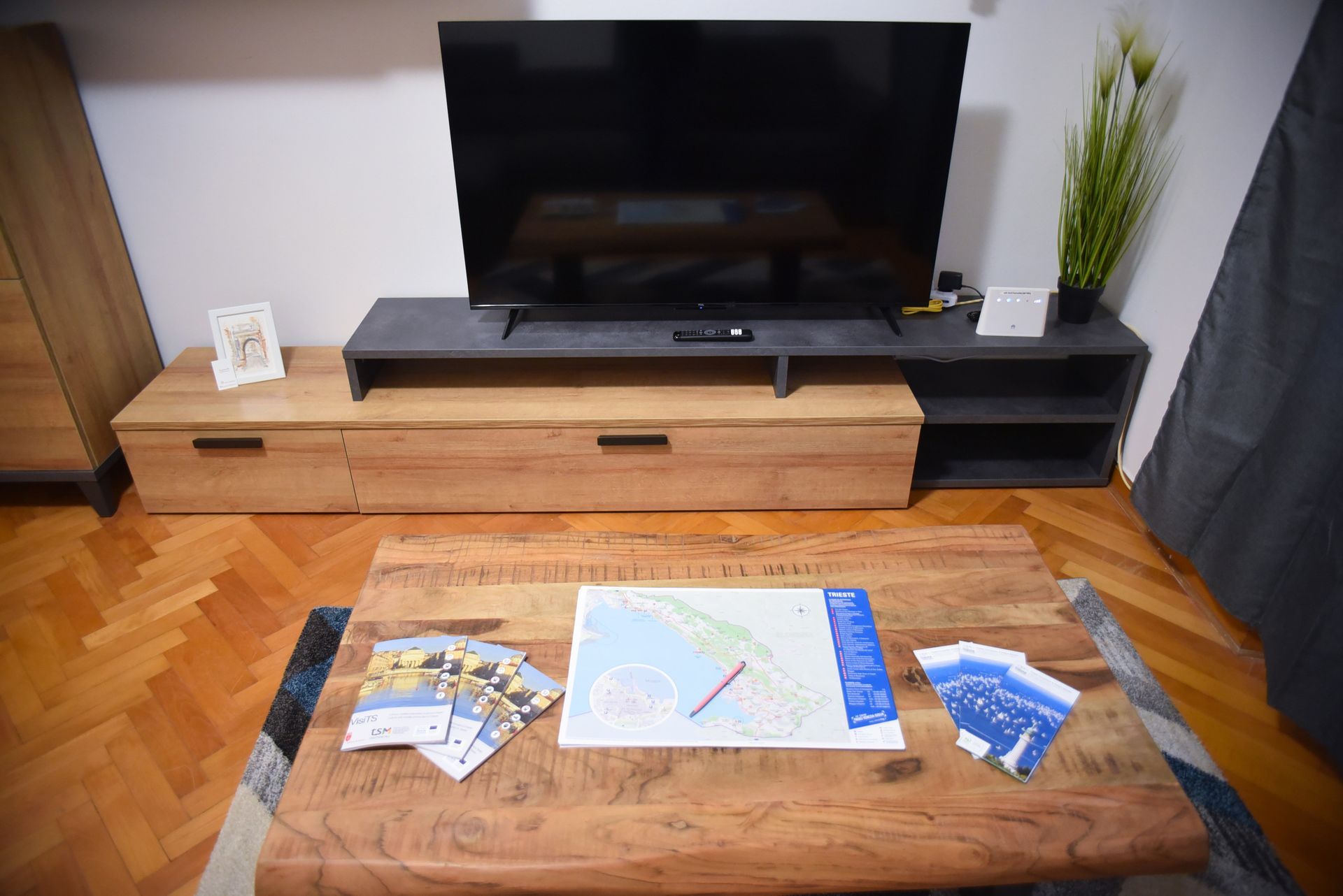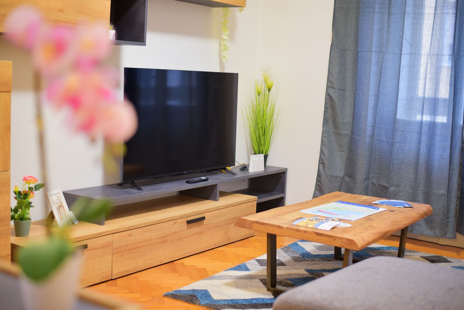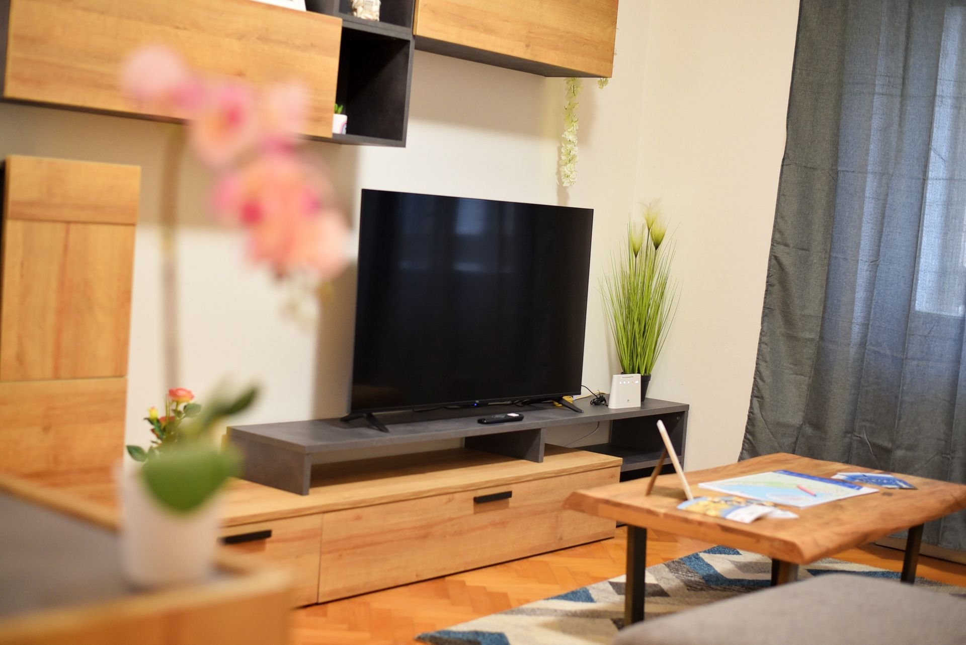Le salon dispose d'une grande télévision à écran plat de 50 pouces avec connexion Netflix, ainsi que d'une connexion Internet Wi-Fi.