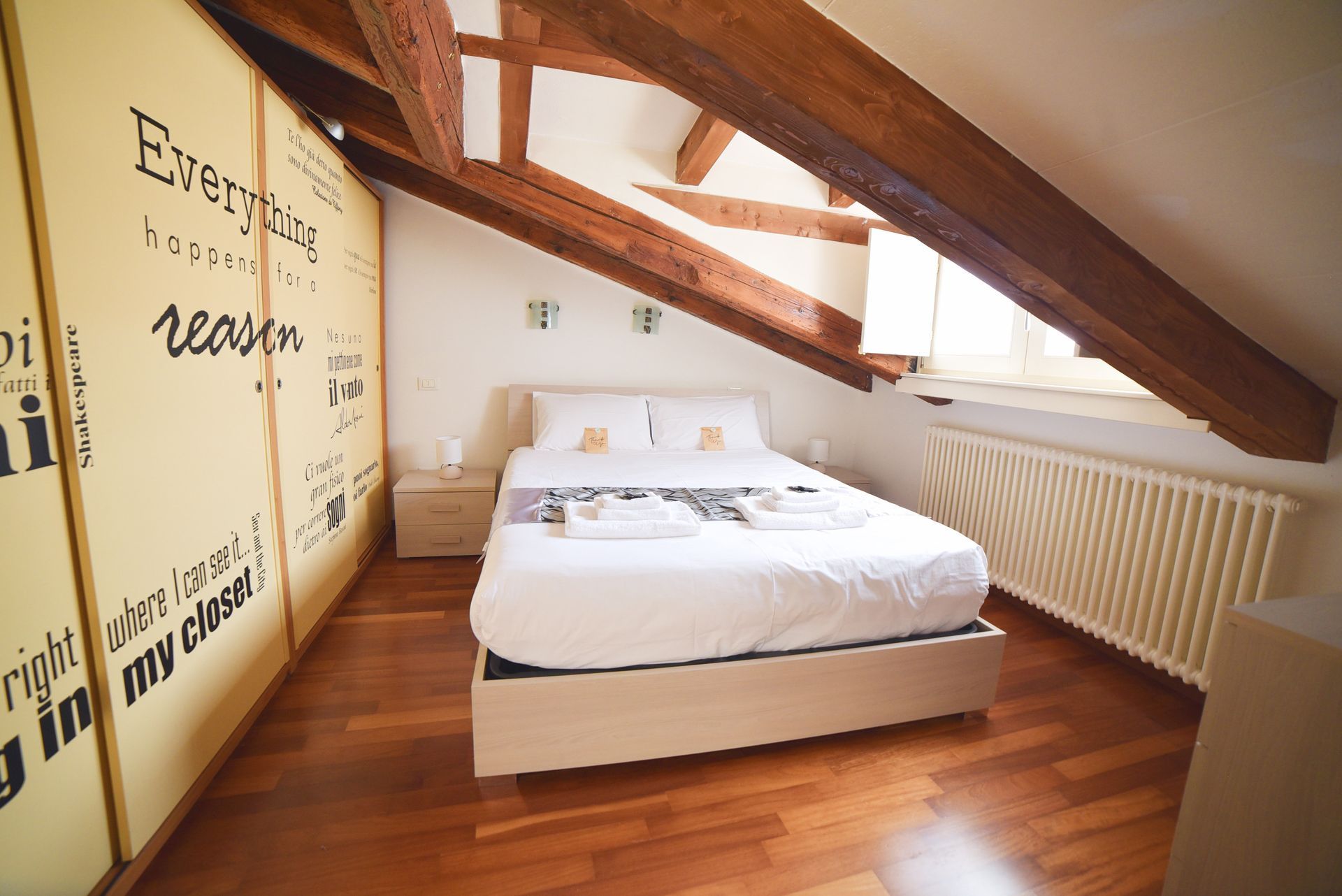 L'appartamento dispone di una giovanile camera da letto con letto matrimoniale Queen Size, ampio armadio abbaini per ammirare lo splendido cielo notturno.