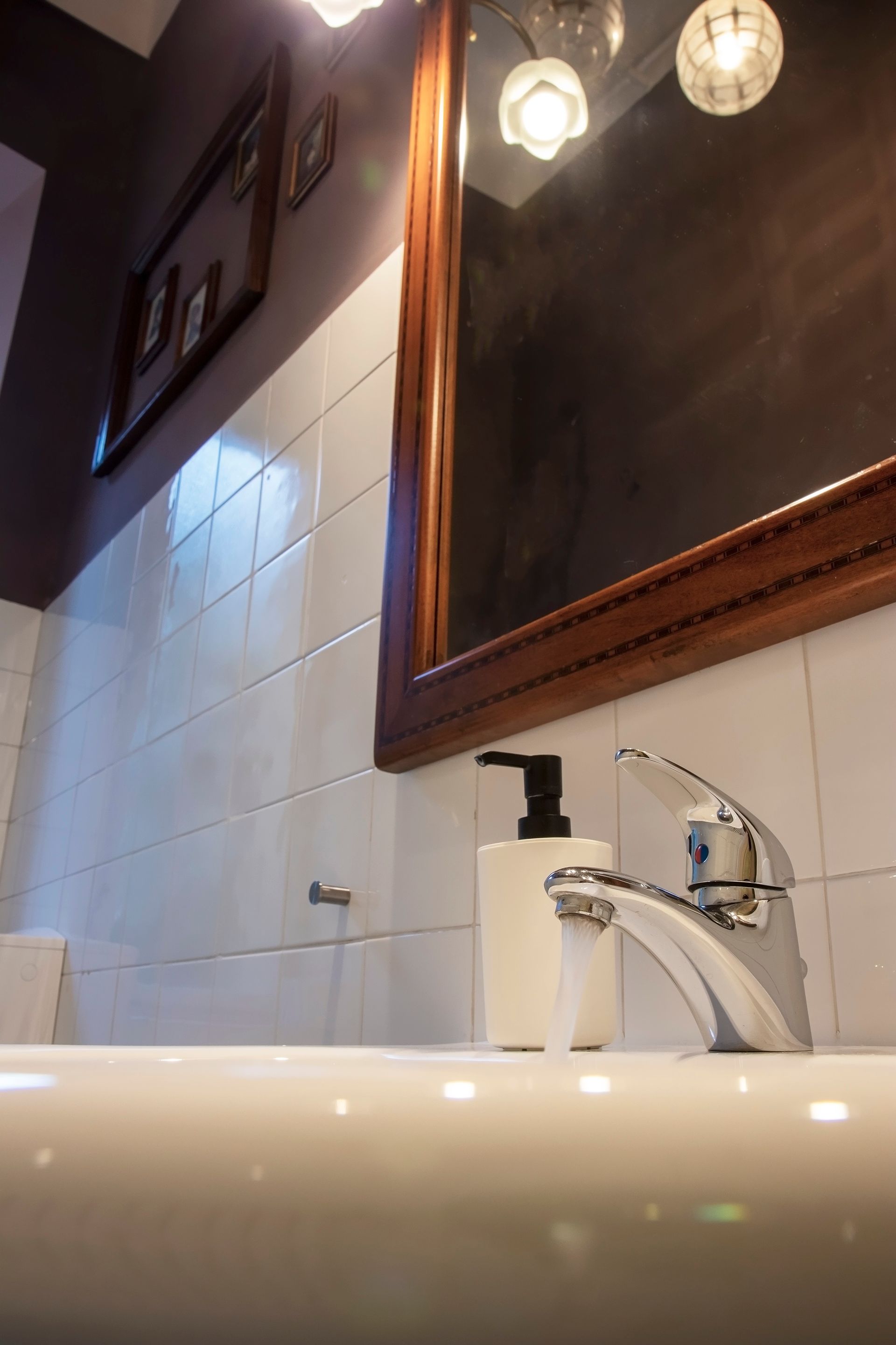 Dom posiada dwie przestronne łazienki z prysznicem, wanną i bidetem oraz duże i wyjątkowe lustra